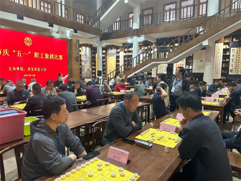 为庆祝“五一”国际劳动节,丰富职工的文体生活,4月28日,由灵宝市总工会主办的灵宝市庆“五一”职工象棋比赛在函谷关历史文化旅游区举办。